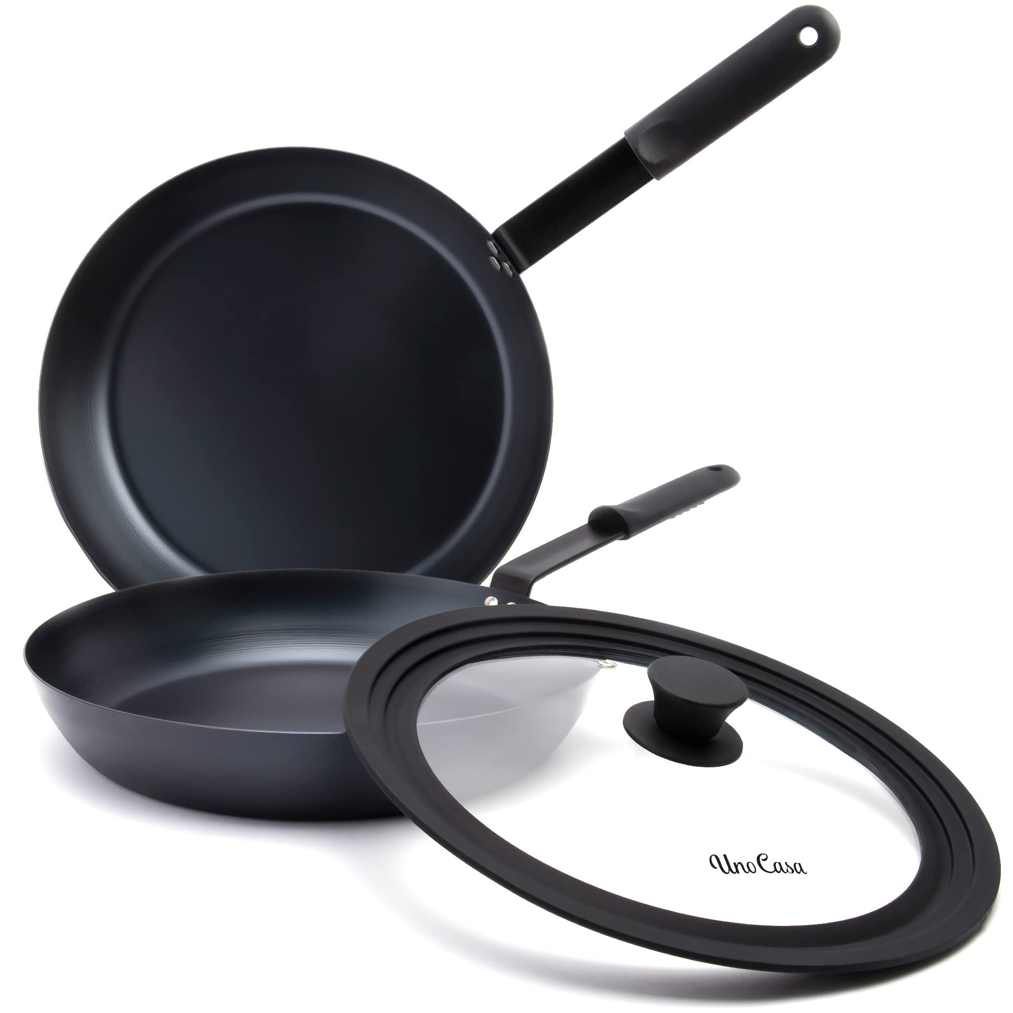 Amazon Com Uno Casa Carbon Steel Pan 12 Inch Non Stick Blue Carbon Steel Frying Pan With Universal Lid Quick Heating Carbon Steel Skillet Carbon Steel Chef Pan With Removable Silicone Handle